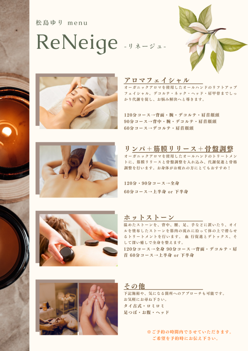 私、松島ゆりが得意としている、そんな筋膜リリースと、リンパマッサージの組み合わせは、仕事のお疲れが溜まった方にとてもオススメです!
